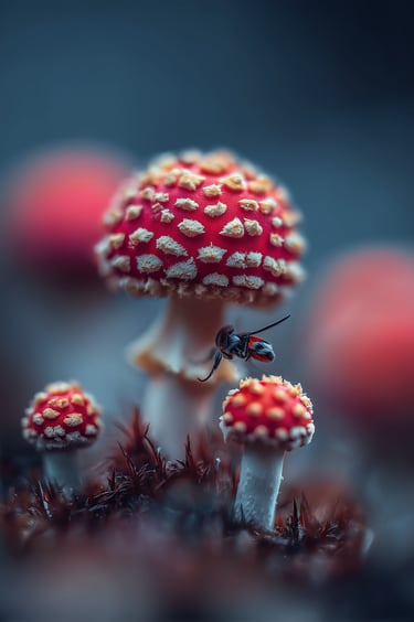 High-resolution visuals for guided visualization (e.g., dew-kissed petals, wild mushrooms, violet blossoms).